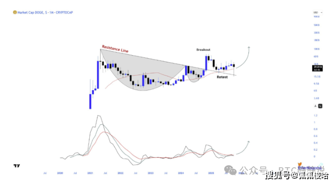 然而,这一走势的有趣之处在于,它成功重新测试了同一条阻力线,现在该阻力线已转为支撑位,价格走势短暂下跌后再次反弹。这次重新测试发生在10月中旬,当时狗狗币一度跌至0.15美元。
