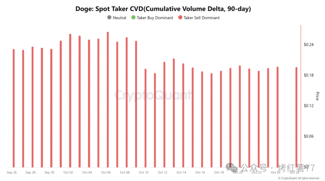 有两个数据能证明:一是显示,10 月份整个月,现货交易者的 “资金流向指标(CVD)” 一直是负的,说明卖的人比买的人多,抛压很强;二是 数据也显示,过去 30 天里,大部分时间都是卖单比买单多。