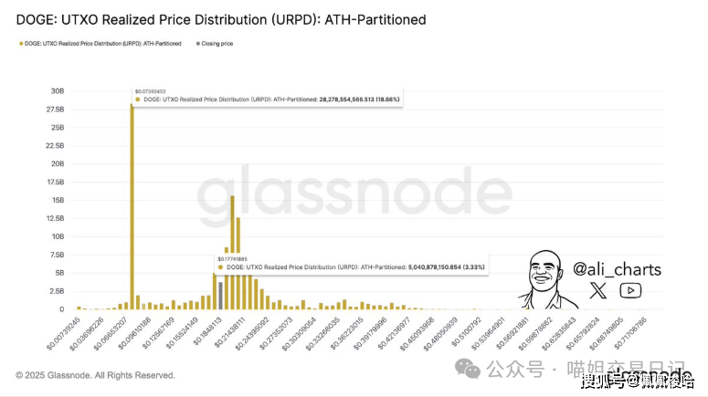 根据狗狗币的UTXO已实现价格分布,该模因币最关键的价位是0.18美元。这个价位是成败的关键区域,如果价格持续维持在该区域,则可能向0.07美元区域靠拢。