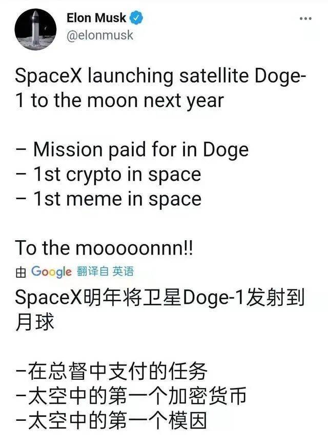 “DOGE-1将证明加密货币在地球轨道之外的应用价值,为星际贸易奠定基础。”