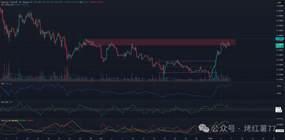 DOGE 目前处于自11月下旬以来的供应区域,短期可能出现回调,但技术面已释放看涨信号。两种入场思路供参考: