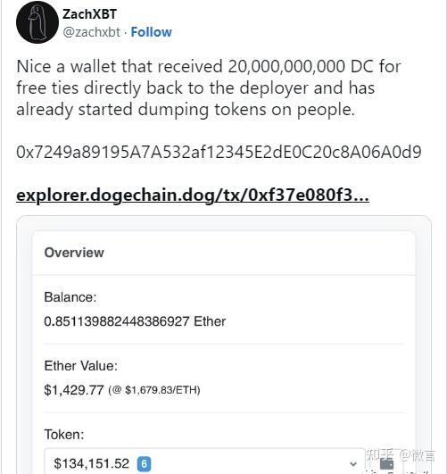 但注意,有推特用户自称是“链上侦探”——ZachXBT,发推特称:发现一个钱包 在这周早些时候收到了 20B DC,并将 1B 代币桥接到以太坊。此后,它每隔几分钟就将 DC 代币换成 USDT,现在在稳定币中持有约 200,000 美元。反过来,提供 20B DC 的钱包在四天前从 Dogechain 部署钱包收到了 50B DC。总结一下就是,团队在出货。