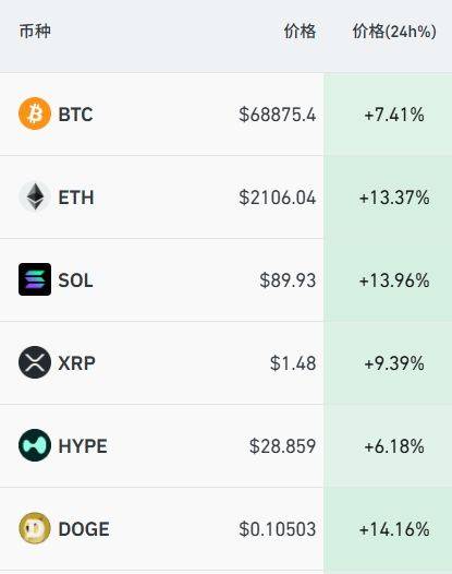 加密货币市场全线%,以太坊、SOL、狗狗币大涨超13%,XRP涨超9%。近25小时内全球超13万人被爆仓,爆仓总金额6.5亿美元,其中90%为空单爆仓。