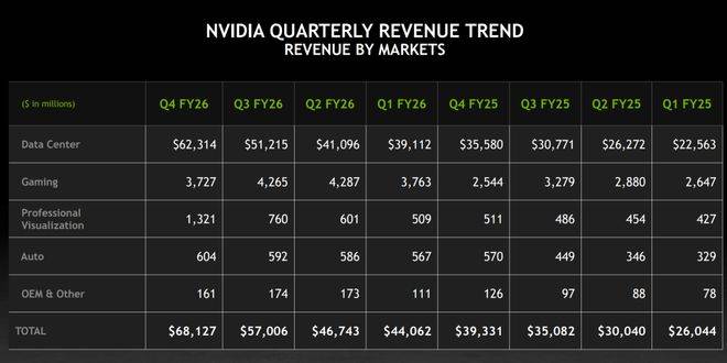 在AI质疑论升温的背景下,算力龙头英伟达2026财年第四季度实现681亿美元的营收,同比增长73%,实现430亿美元的净利润。公司同时预期当前季度营收将进一步增长至780亿美元,大幅碾压市场预期。