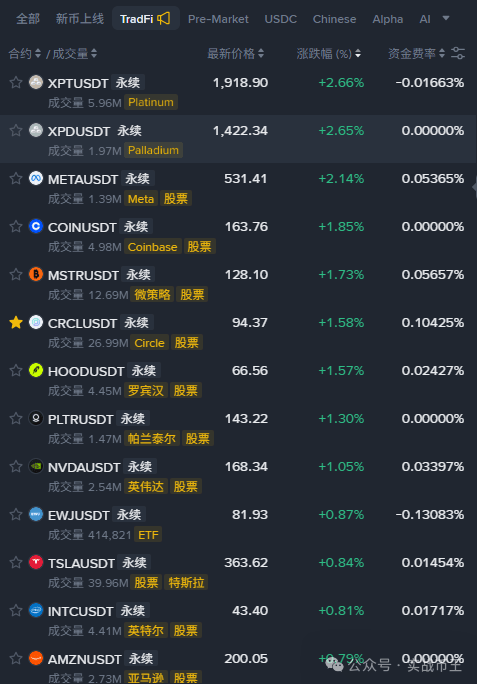 以前天天盯着BTC、ETH做合约,现在倒好,迷上了XAU、XAG、CRCL这些。每天看着涨幅榜和跌幅榜上的币,一个强烈的感受冒了出来: