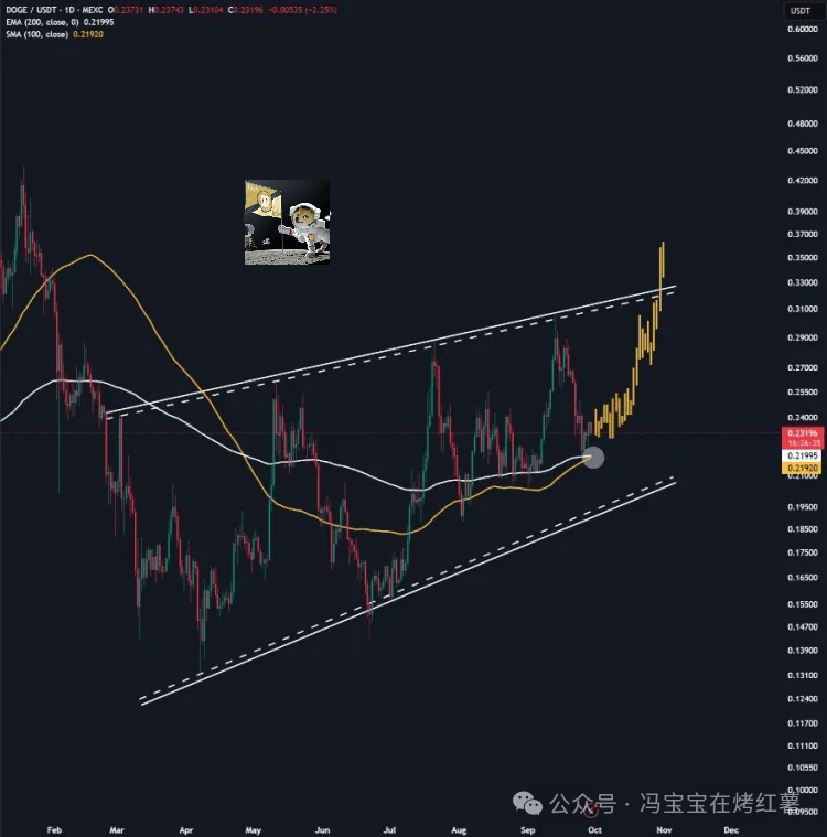 设定的关键突破位在 0.33美元,该位置曾多次压制价格上行。一旦有效突破,资金可能加速流入山寨币市场,“如果DOGE站稳0.33美元,整个山寨市场可能会迎来狂热。”
