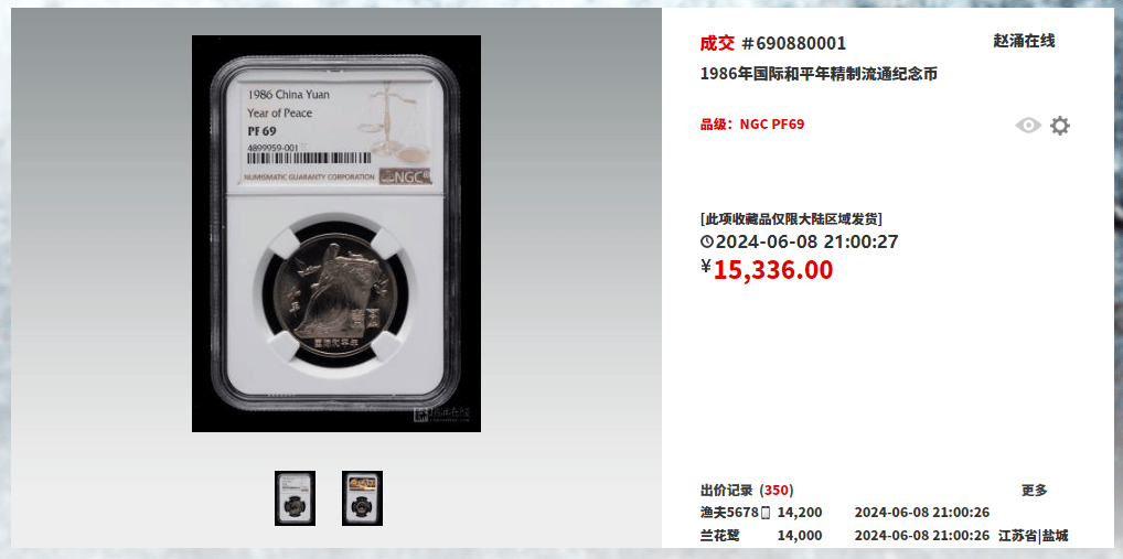 早期的精制币,包括这枚1986年的国际和平年纪念币,发行量通常非常有限,使得它们在市场上的供给远远无法满足需求。