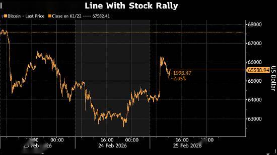 此番早盘上涨与国情咨文讲话前股市走高同步,特朗普在讲话中为其经济政绩进行了辩护。本周早些时候,最高法院作出判决,裁定特朗普无权动用紧急权力征收所谓对等进口税(其核心政策主张之一),这一消息导致加密货币价格大幅跳水;此前特朗普曾援引另一项权力,宣布将对全球征收15%进口税。