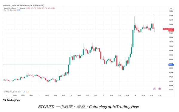 他在 X 上 告诉粉丝:“又是一天,又是对 72000 美元水平的一次测试。看看这次看涨方能否突破。”
