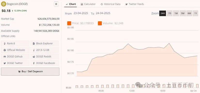Dogecoin狗狗币交易平台 - 狗狗币价格行情,实时走势图2025年价格预测:模因币暴涨DOGE飙升13%将突破027美元!